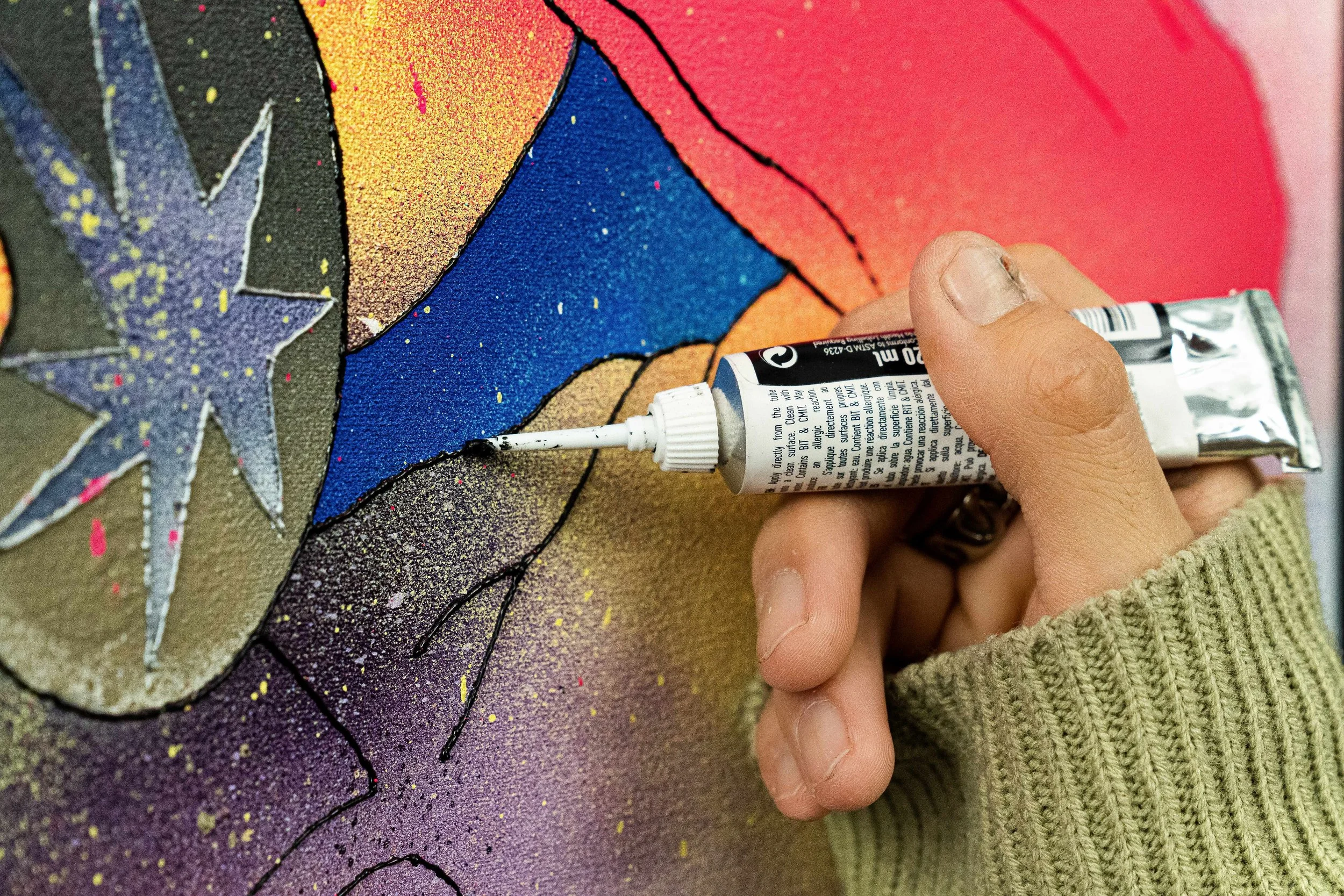 Hwichan Ko: I primarily use spray paint and acrylics in my art, influenced by my graffiti experience with the crew “TSM (The Style Machine)” during my undergraduate years. Spray paint allows me to work on various surfaces and achieve intense textures and colors, reflecting the freedom and spontaneity I admire in graffiti and hip-hop culture. This medium helps me express my thoughts and emotions vividly, with the dynamic effects of spray paint mirroring the energy and creativity I draw from hip-hop music.